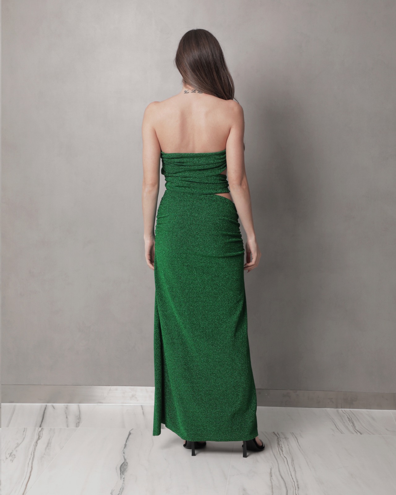 The Cora strapless dress is a show-stopping piece this season; made of the brand’s signature fabric. Featuring daring cutouts, shiny buckle detailing and a thigh-high slit. Fall in love with your femininity and give her a go!