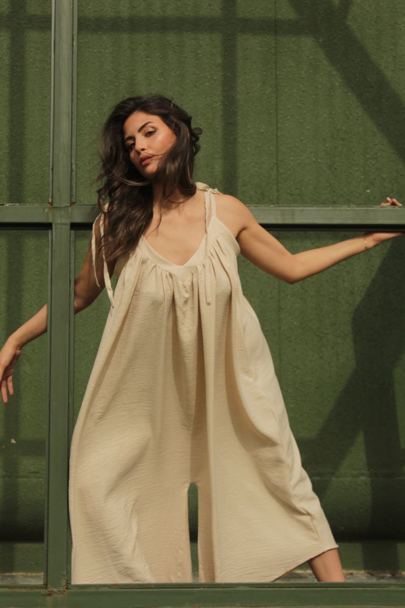 Description: Flowy Wide-leg Jumpsuit ,Strappy V-neck, Adjustable Straps